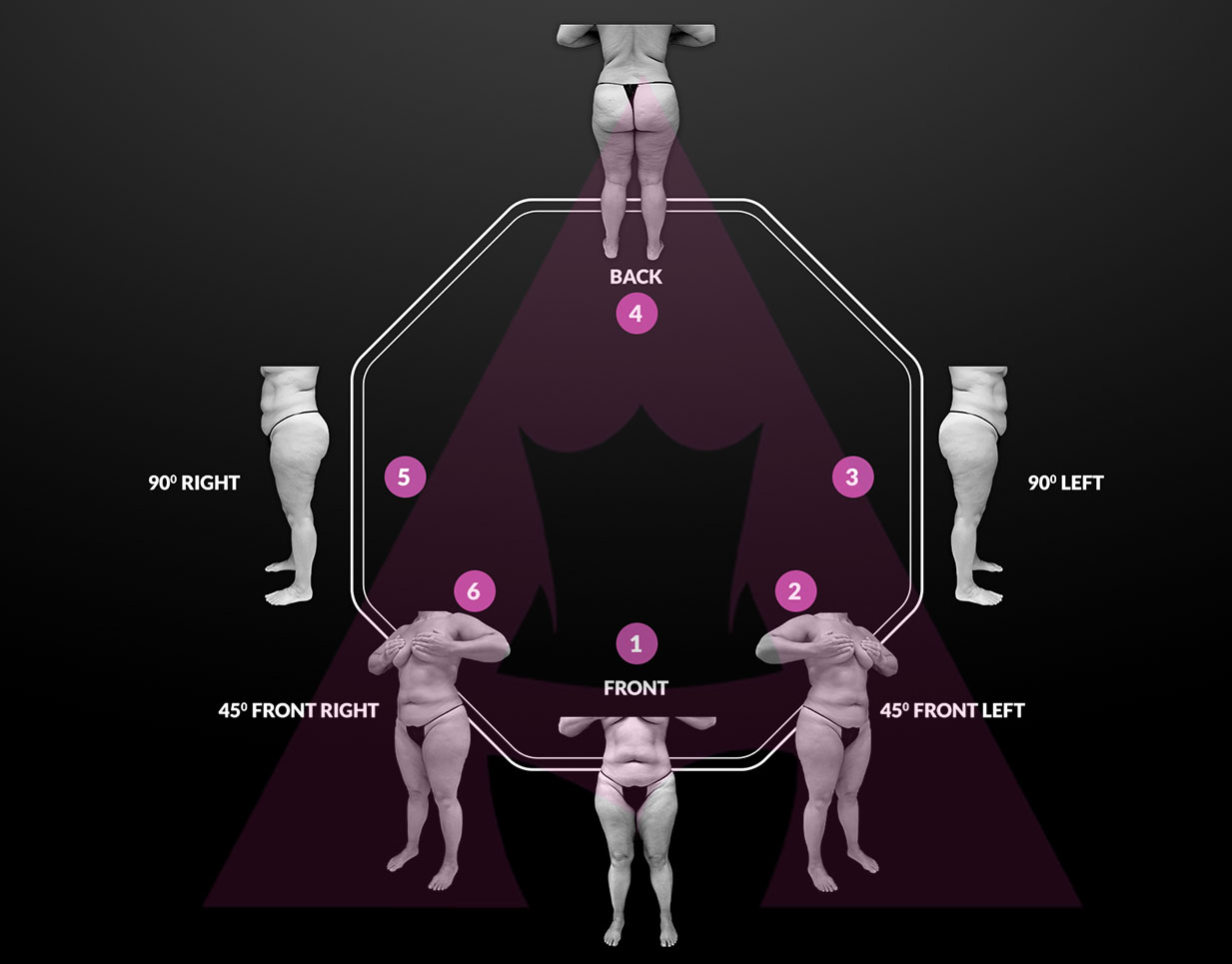 - Posicionamiento del paciente: Todas las fotos deben tomarse en las mismas posiciones para poder comparar mejor la progresión de los cambios físicos.